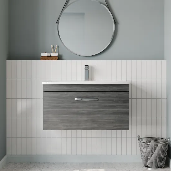 Nuie Athena 800mm Anthracite Woodgrain Wall Hung Single Drawer Vanity Unit Including Basin