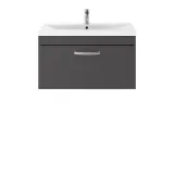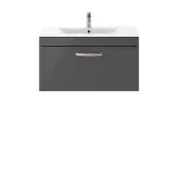 Nuie Athena 800mm Gloss Grey Wall Hung Single Drawer Vanity Unit with 1 Tap Hole Basin