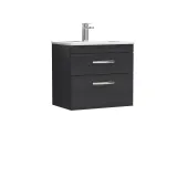 Nuie Athena 600mm Charcoal Black Wall Hung 2 Drawer Vanity Unit With 1 Tap Hole Basin