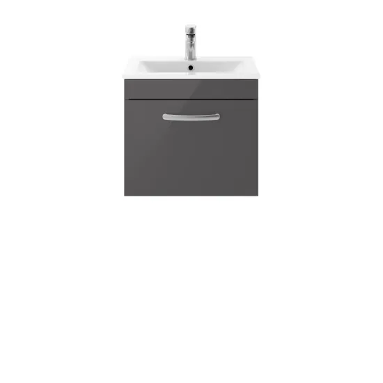 nuie Athena Wall Hung Single Drawer Vanity With Minimalist 1 Tap Hole Ceramic Basin 500mm - Gloss Grey
