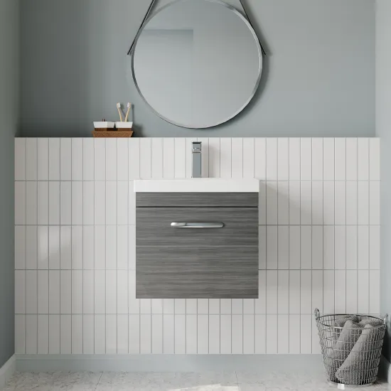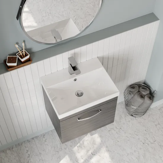 nuie Athena Wall Hung Single Drawer Vanity With Thin-Edge 1 Tap Hole Ceramic Basin 500mm - Anthracite Woodgrain