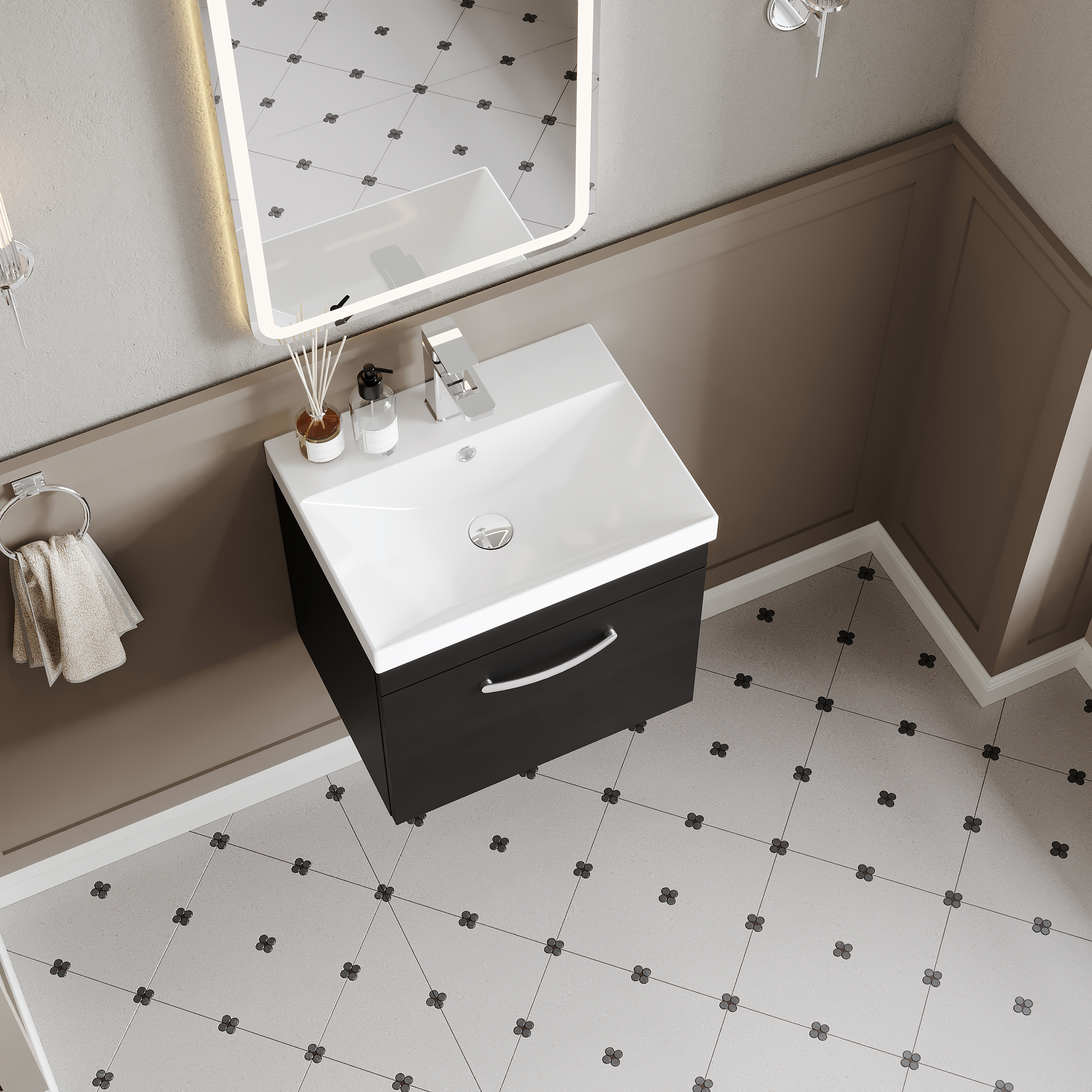 nuie Athena Wall Hung Single Drawer Vanity With Thin-Edge 1 Tap Hole Ceramic Basin 500mm - Hacienda Black