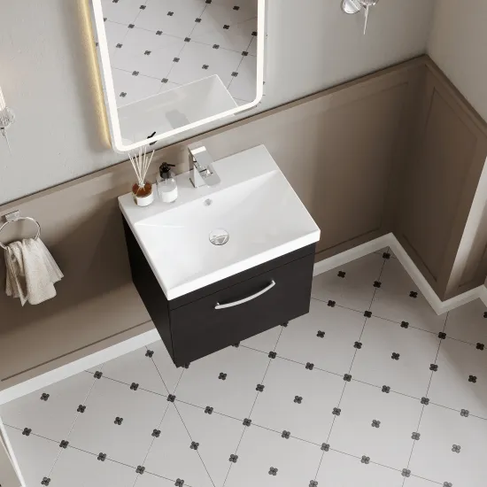Nuie Athena 500mm Anthracite Woodgrain Wall Hung Single Drawer Vanity Unit with 1 Tap Hole Basin and Handle