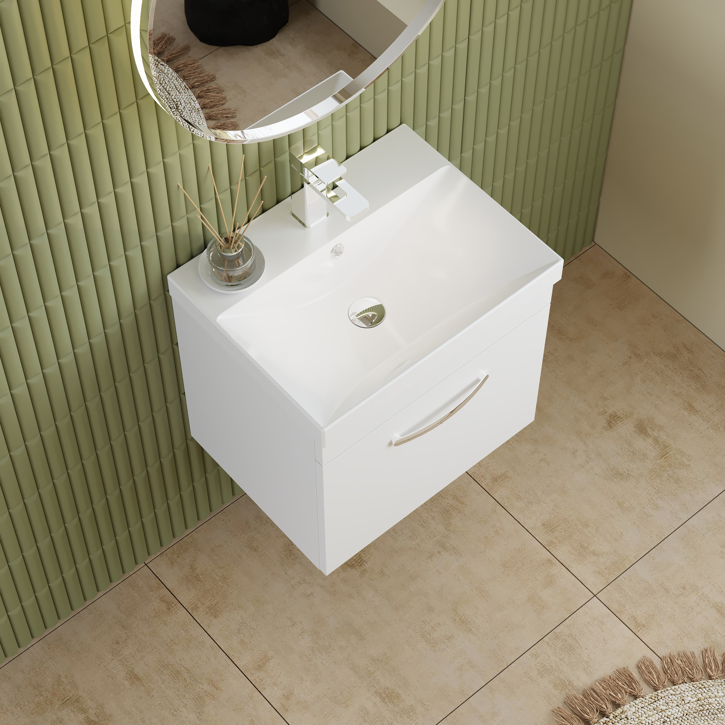 nuie Athena Wall Hung Single Drawer Vanity With Thin-Edge 1 Tap Hole Ceramic Basin 500mm - Gloss White