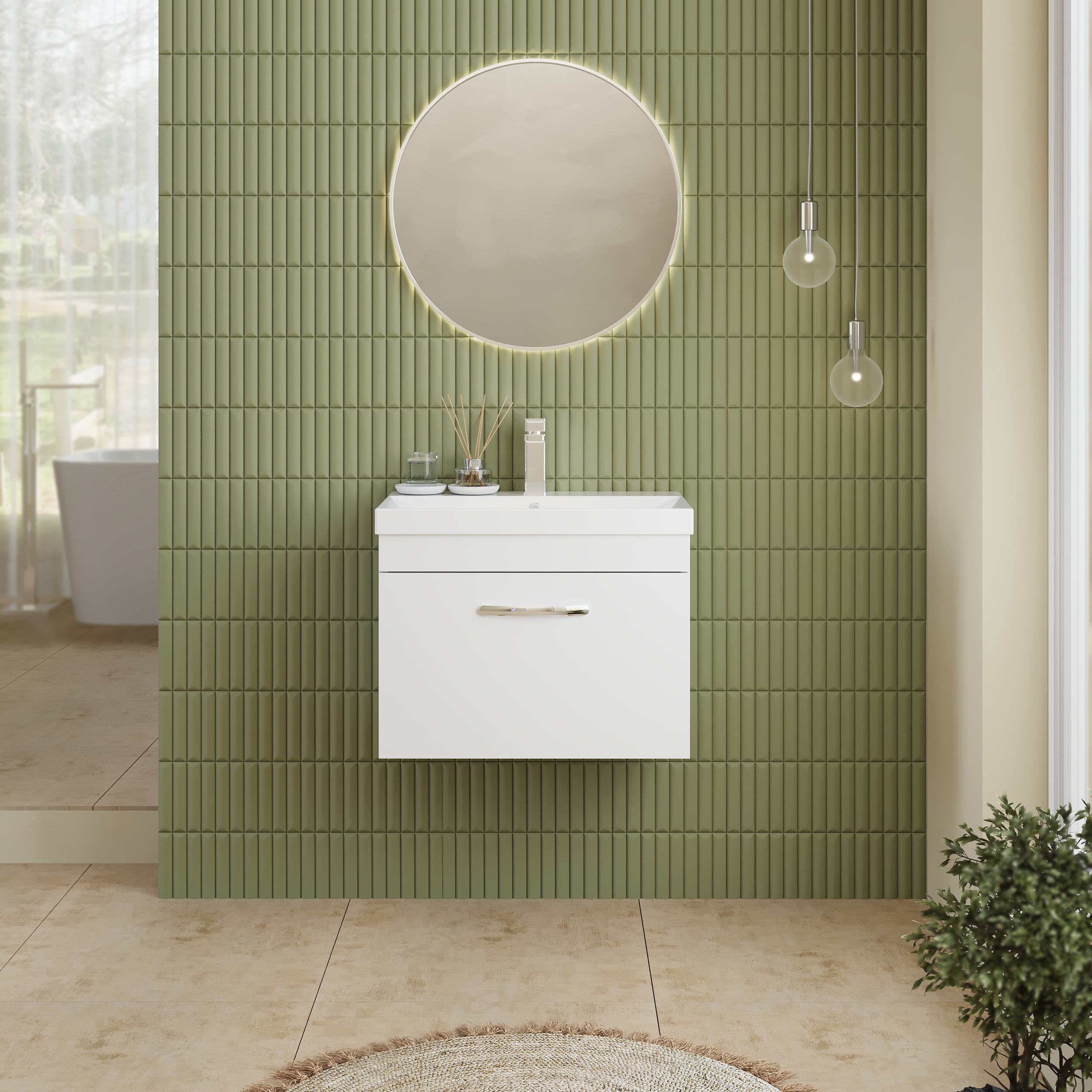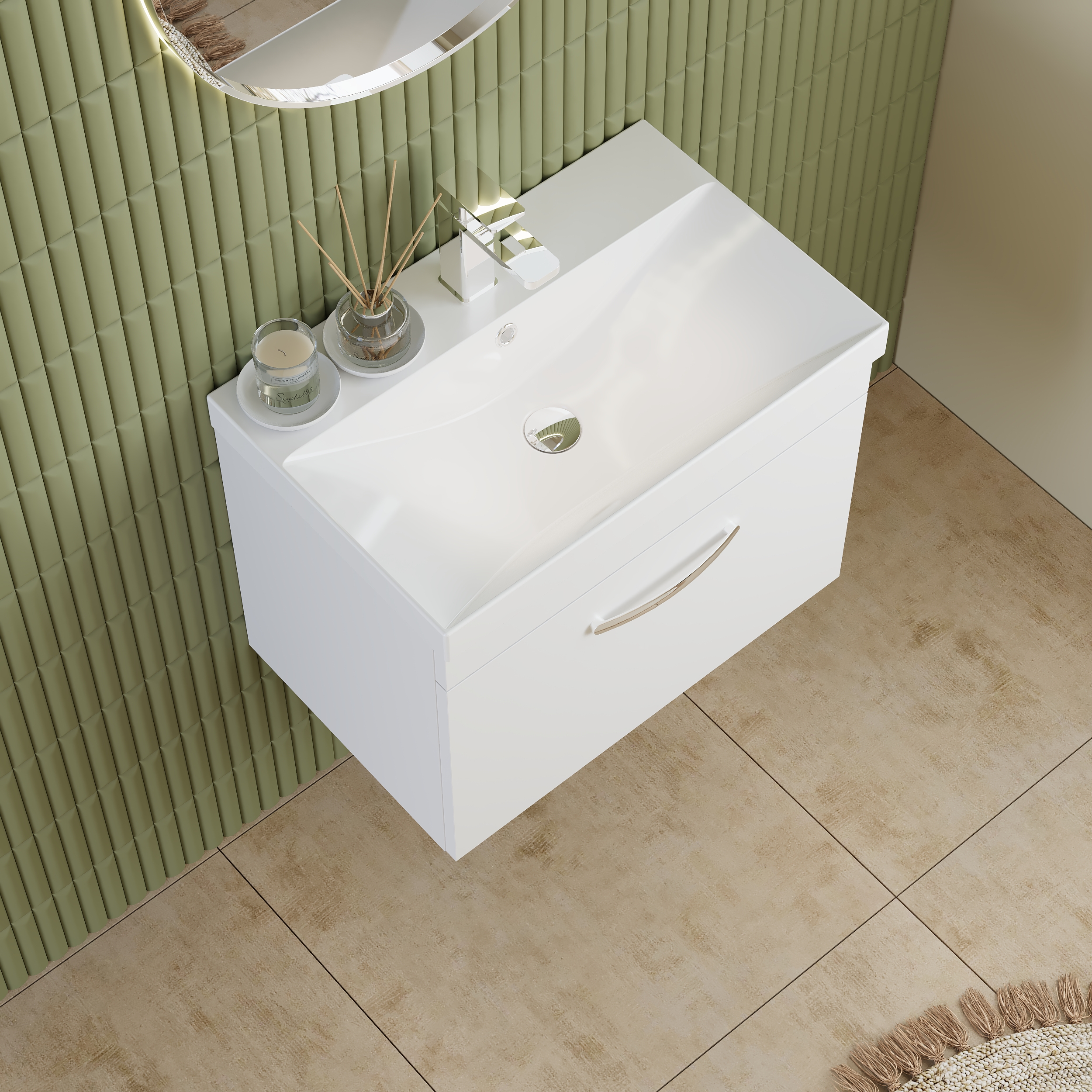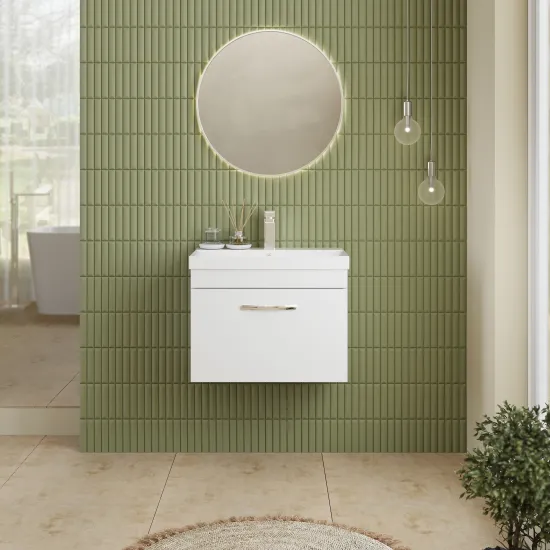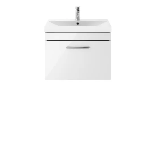 nuie Athena Wall Hung Single Drawer Vanity With Thin-Edge 1 Tap Hole Ceramic Basin 600mm - Gloss White