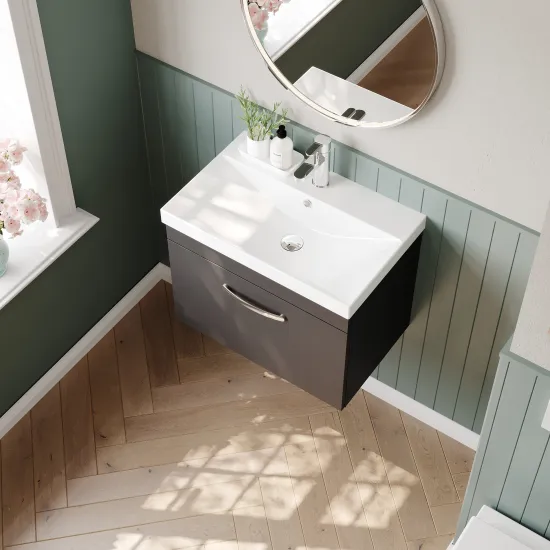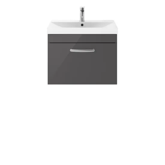 nuie Athena Wall Hung Single Drawer Vanity With Thin-Edge 1 Tap Hole Ceramic Basin 600mm - Gloss Grey