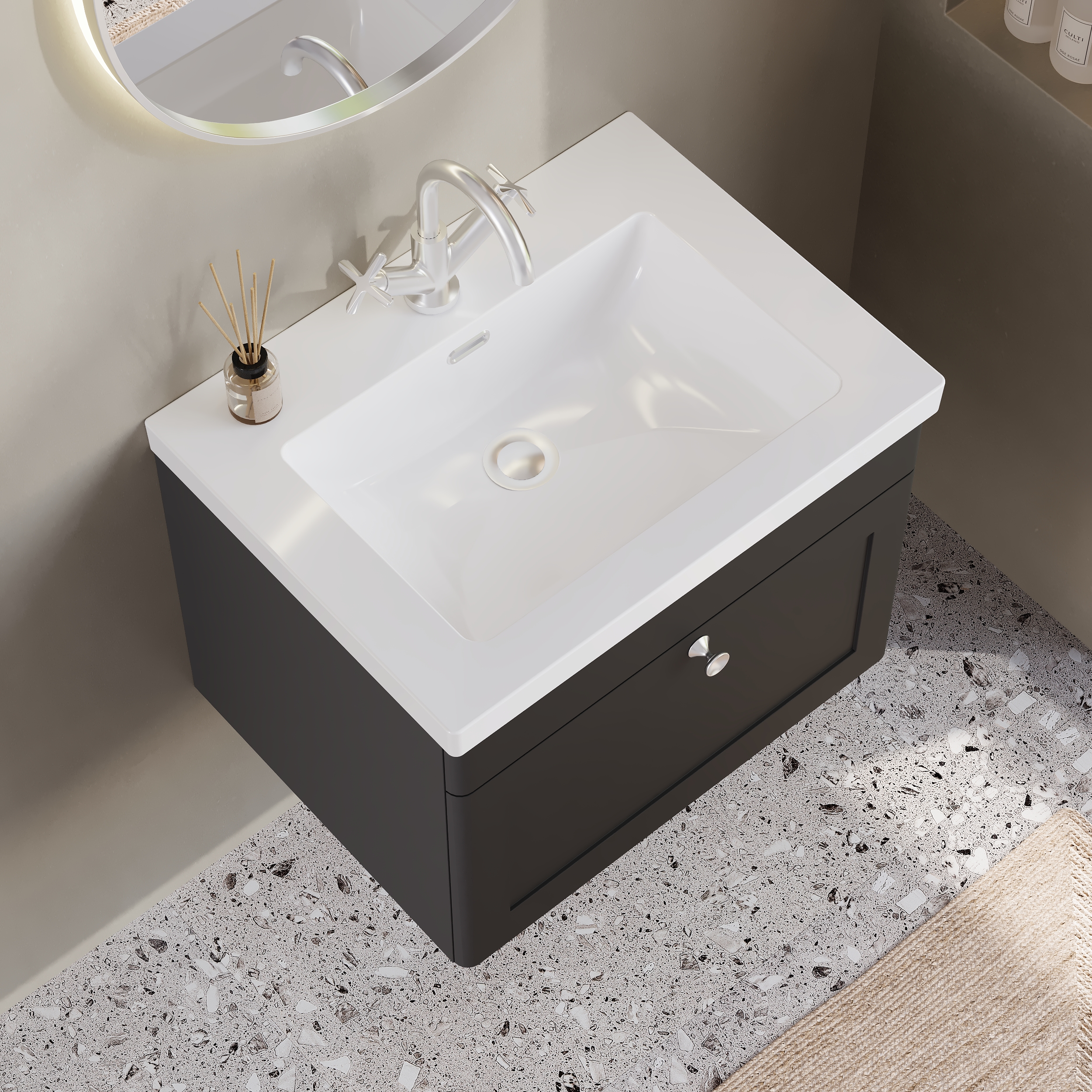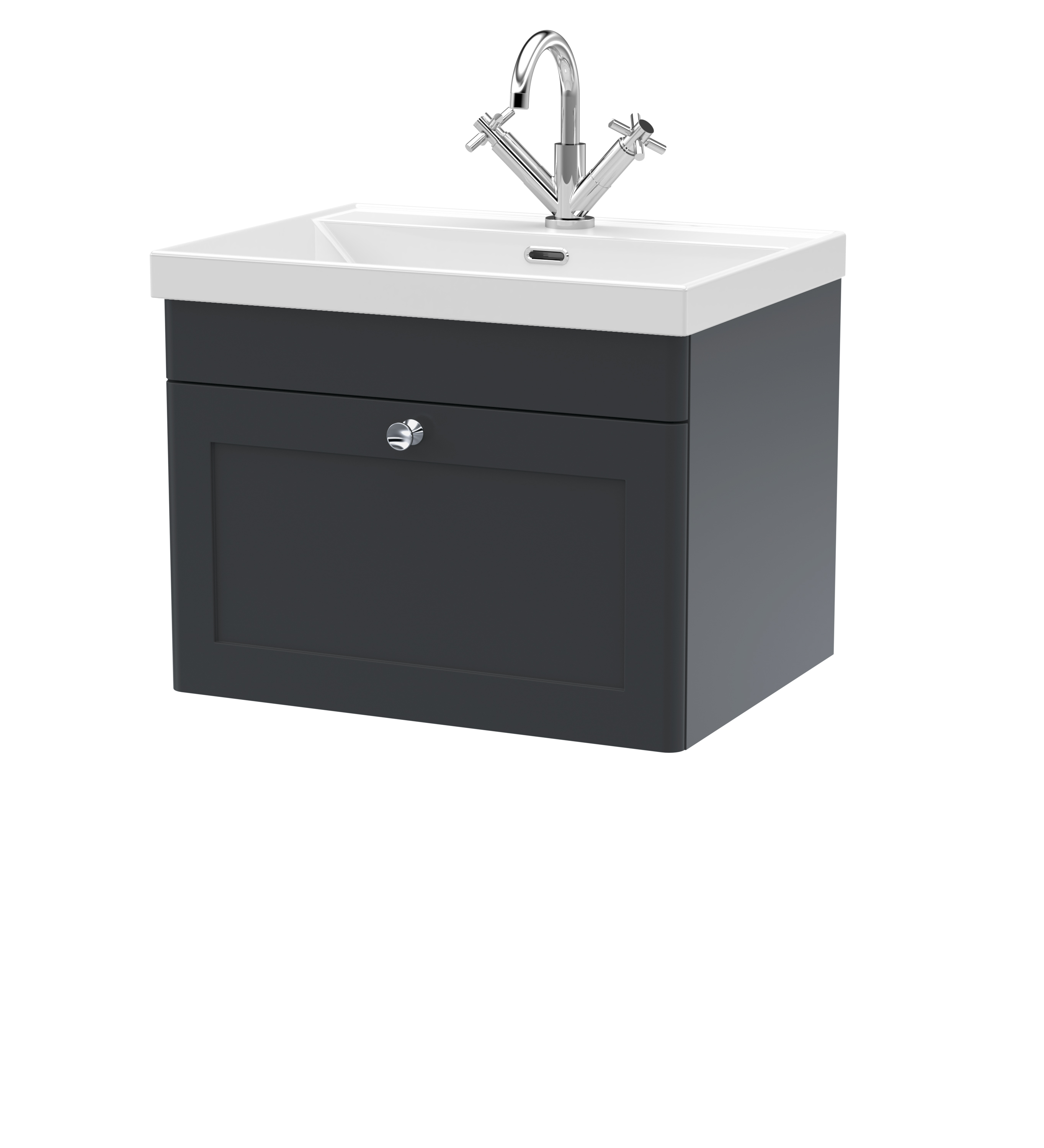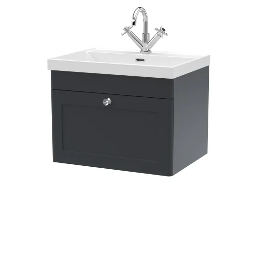 nuie Classique 600mm Wall Hung 1-Drawer Vanity with Basin - 1 Tap Hole - Soft Black