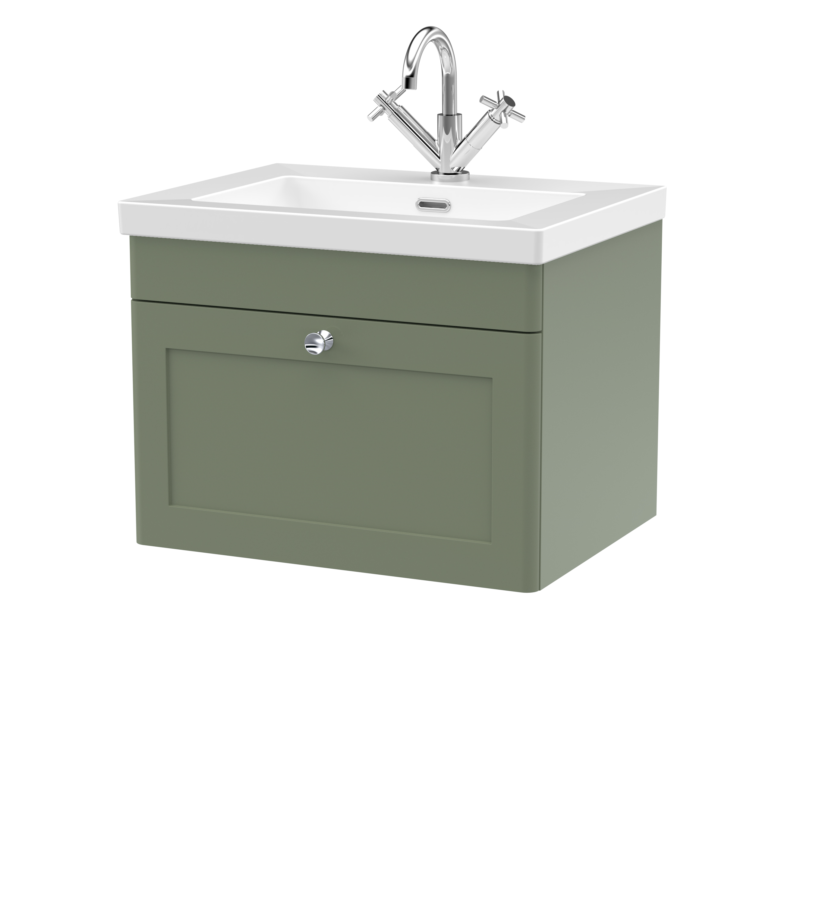 nuie Classique 600mm Wall Hung 1-Drawer Vanity with Basin - 1 Tap Hole - Satin Green