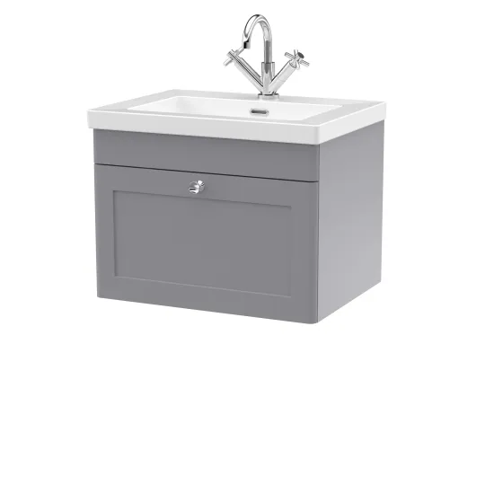 nuie Classique 600mm Wall Hung 1-Drawer Vanity with Basin - 1 Tap Hole - Satin Grey