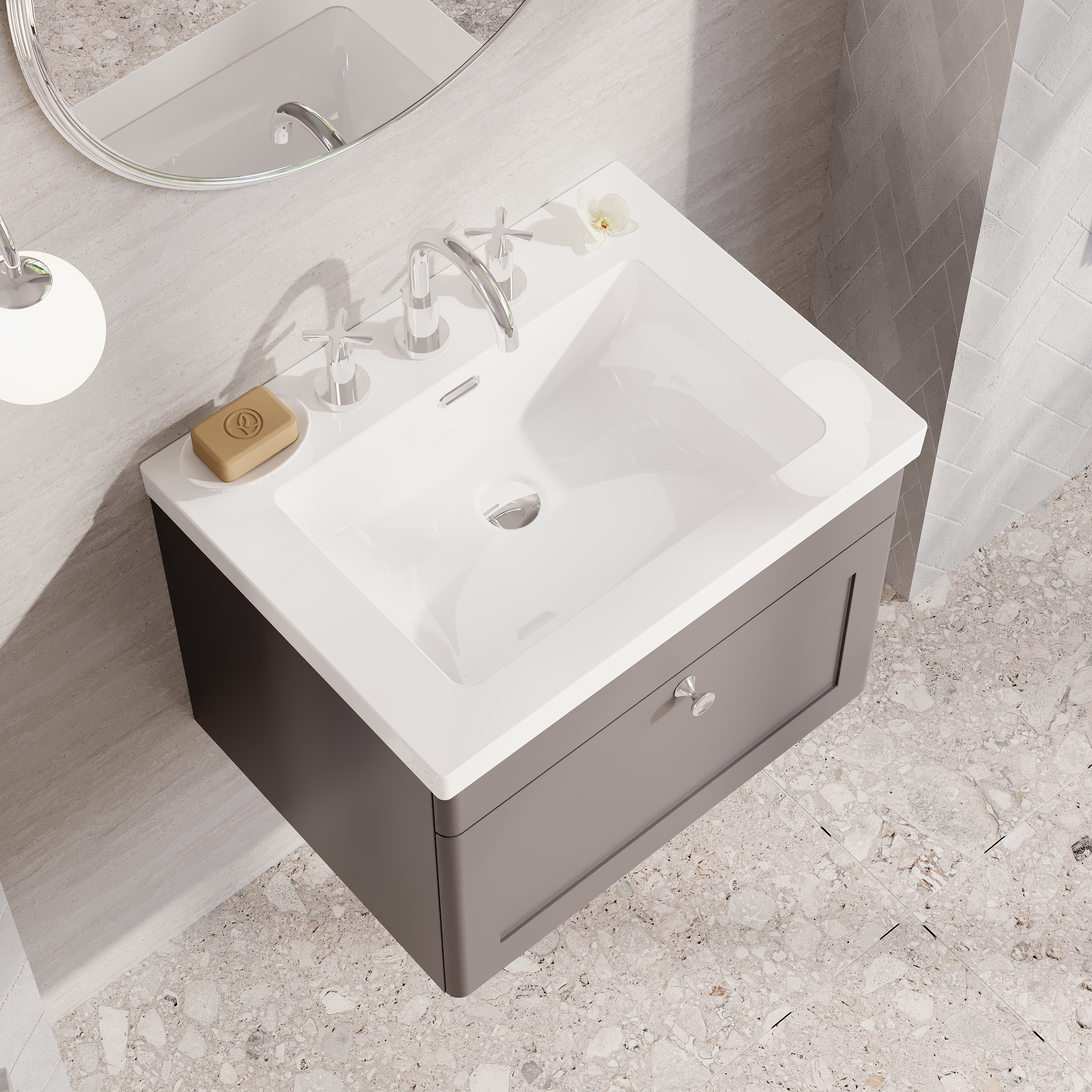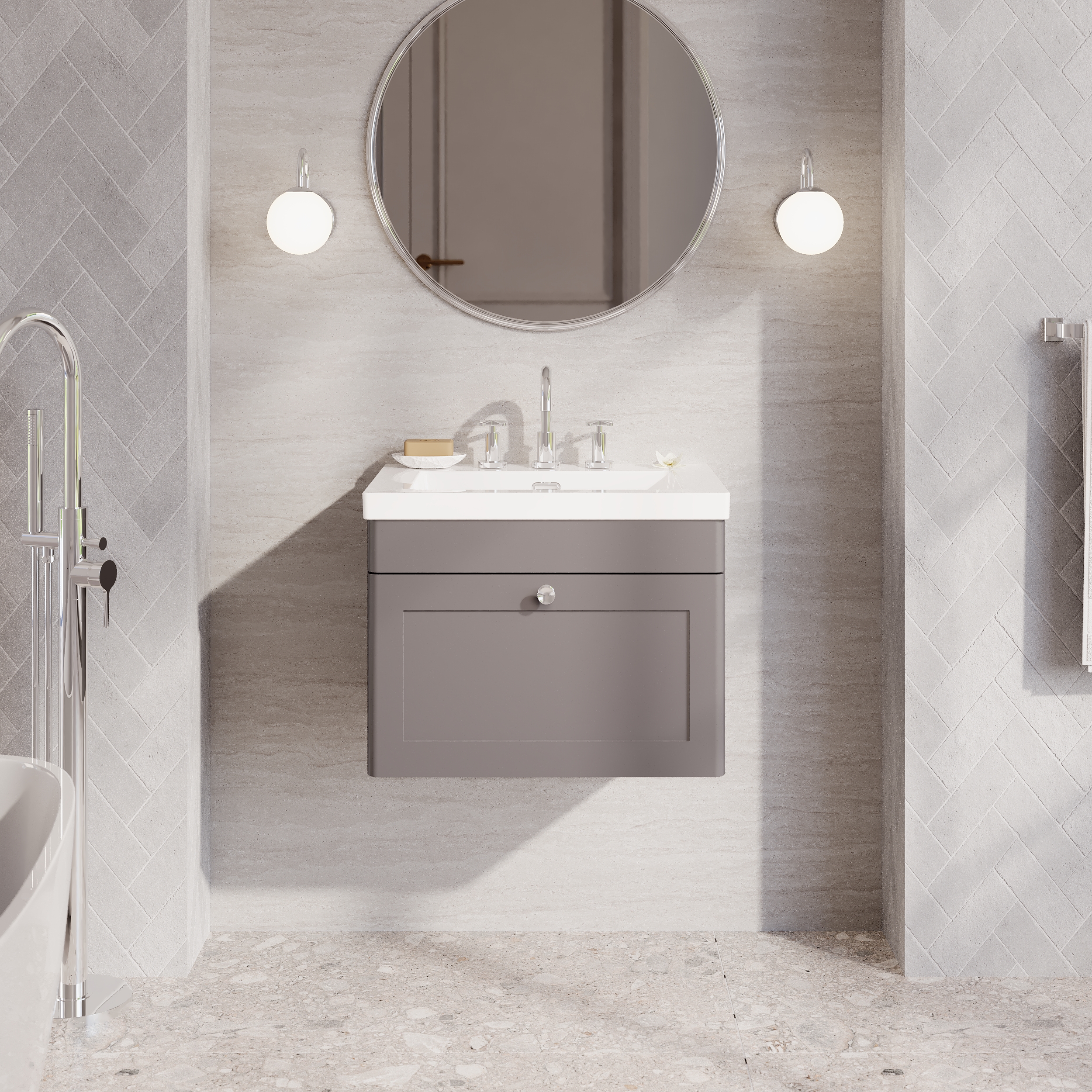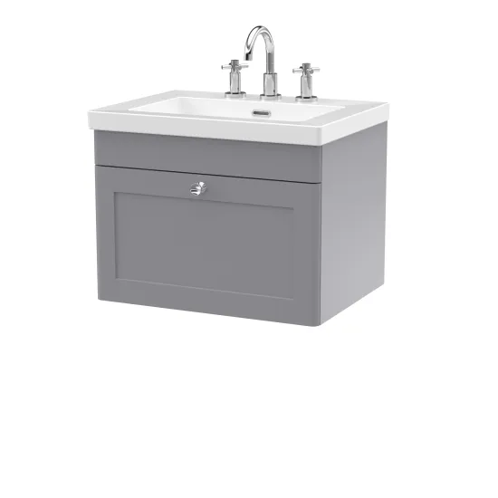 nuie Classique 600mm Wall Hung 1-Drawer Vanity with Basin - 3 Tap Hole - Satin Grey