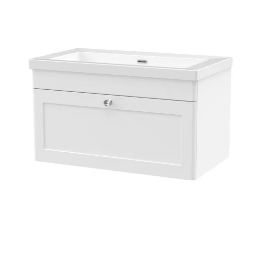 nuie Classique 800mm Wall Hung Single Drawer Vanity with Basin - 0 Tap Hole - Satin White