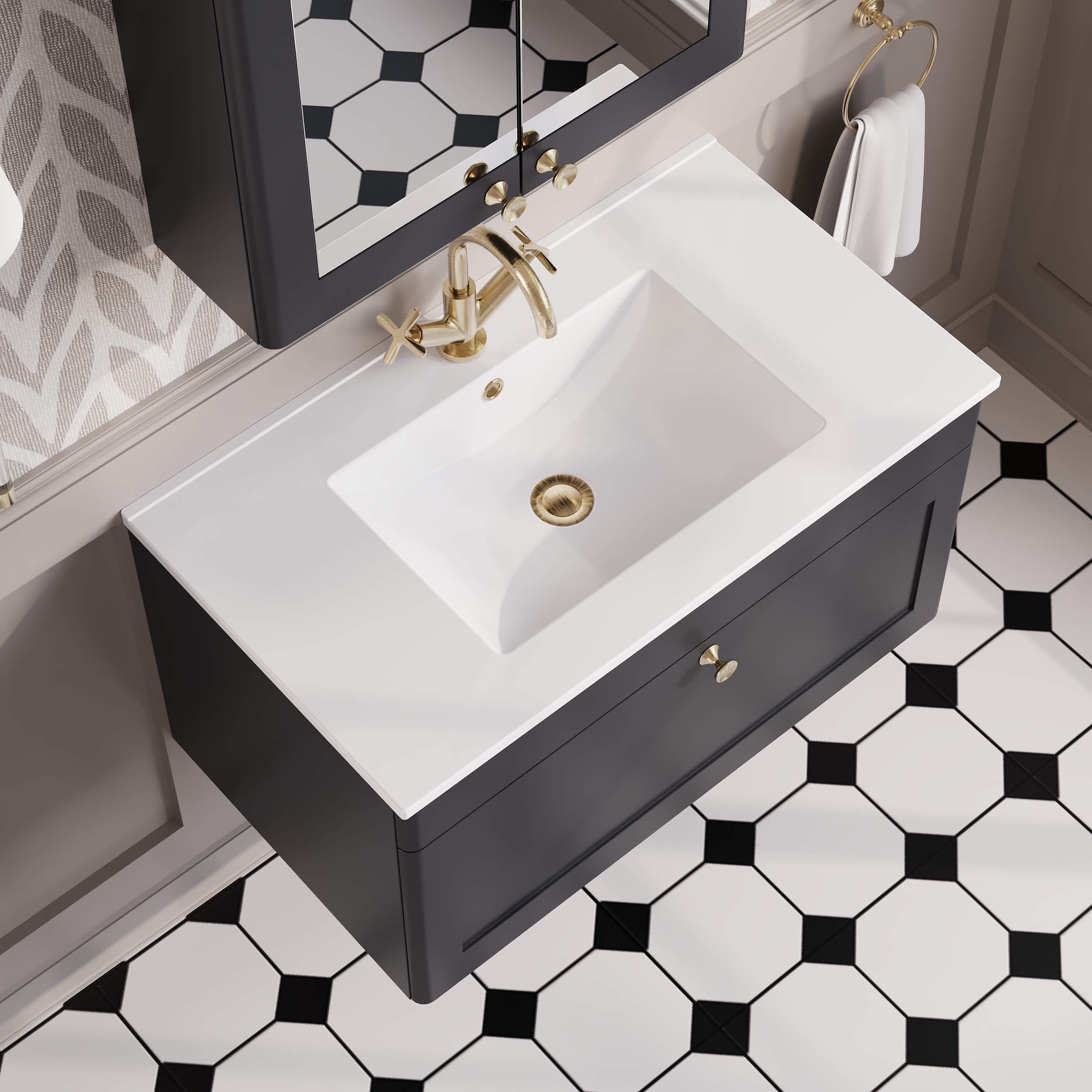 nuie Classique 800mm Wall Hung Single Drawer Vanity with Basin - 1 Tap Hole - Soft Black