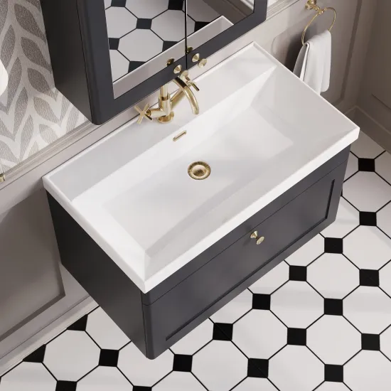 Nuie Classique 800mm Soft Black Wall Hung Single Drawer Vanity Unit with Basin