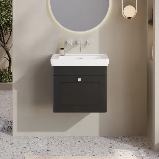 Nuie Classique 500mm Wall Hung 1 Drawer Vanity Unit With 1 Tap Hole Basin