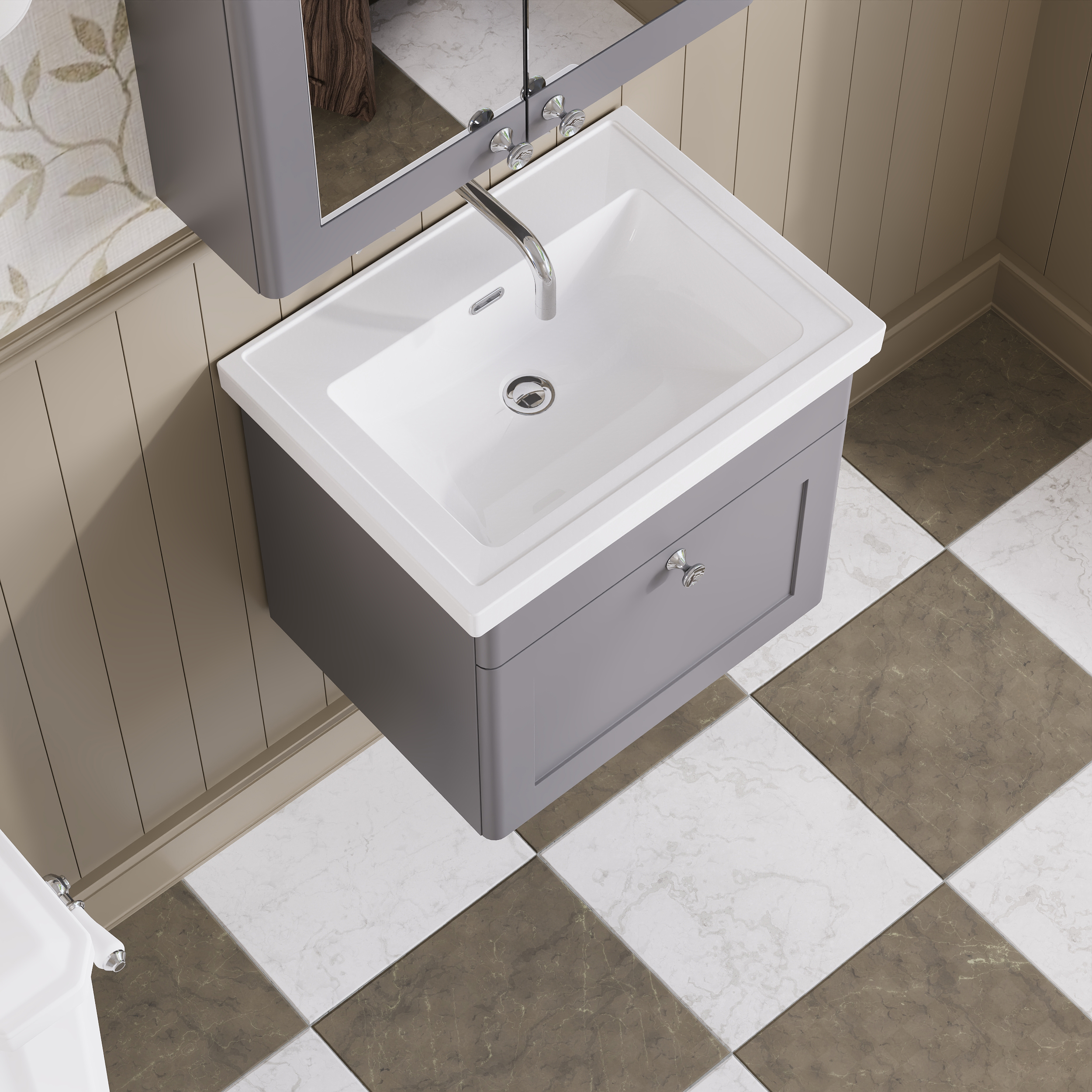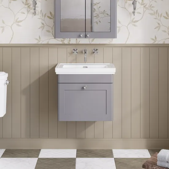 Nuie Classique 500mm Satin Grey Wall Hung 1 Drawer Vanity Basin Unit Including 1 Tap Hole Basin