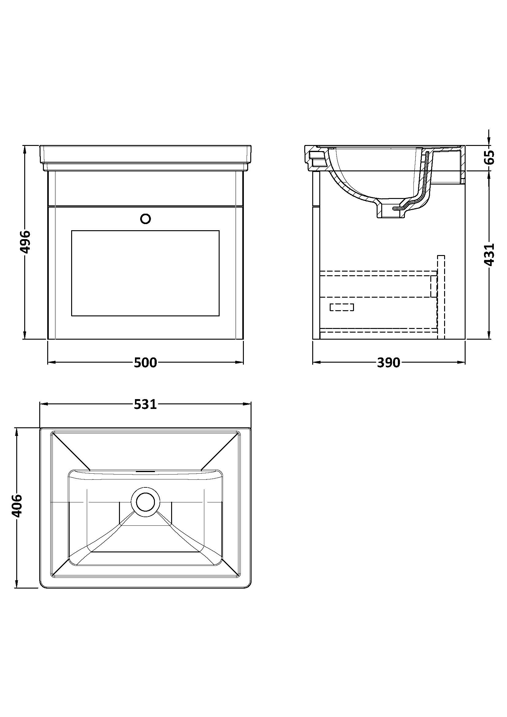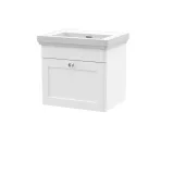 Nuie Classique 500mm Satin White Wall Hung 1 Drawer Vanity Unit & Basin With Chrome Handle