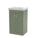 Nuie Classique 500mm Satin Green Floor Standing 2 Door Vanity Unit with 0 Tap Hole Basin