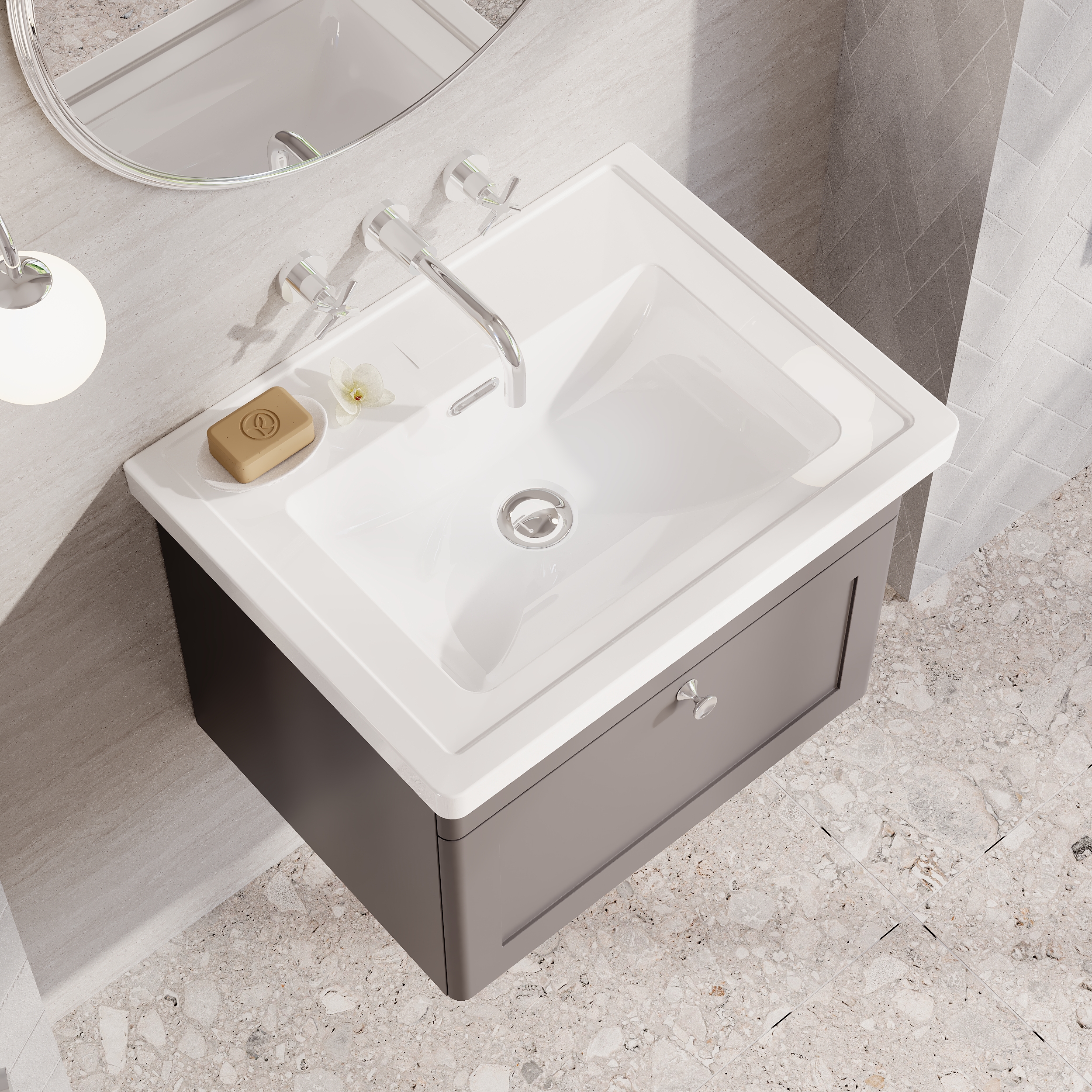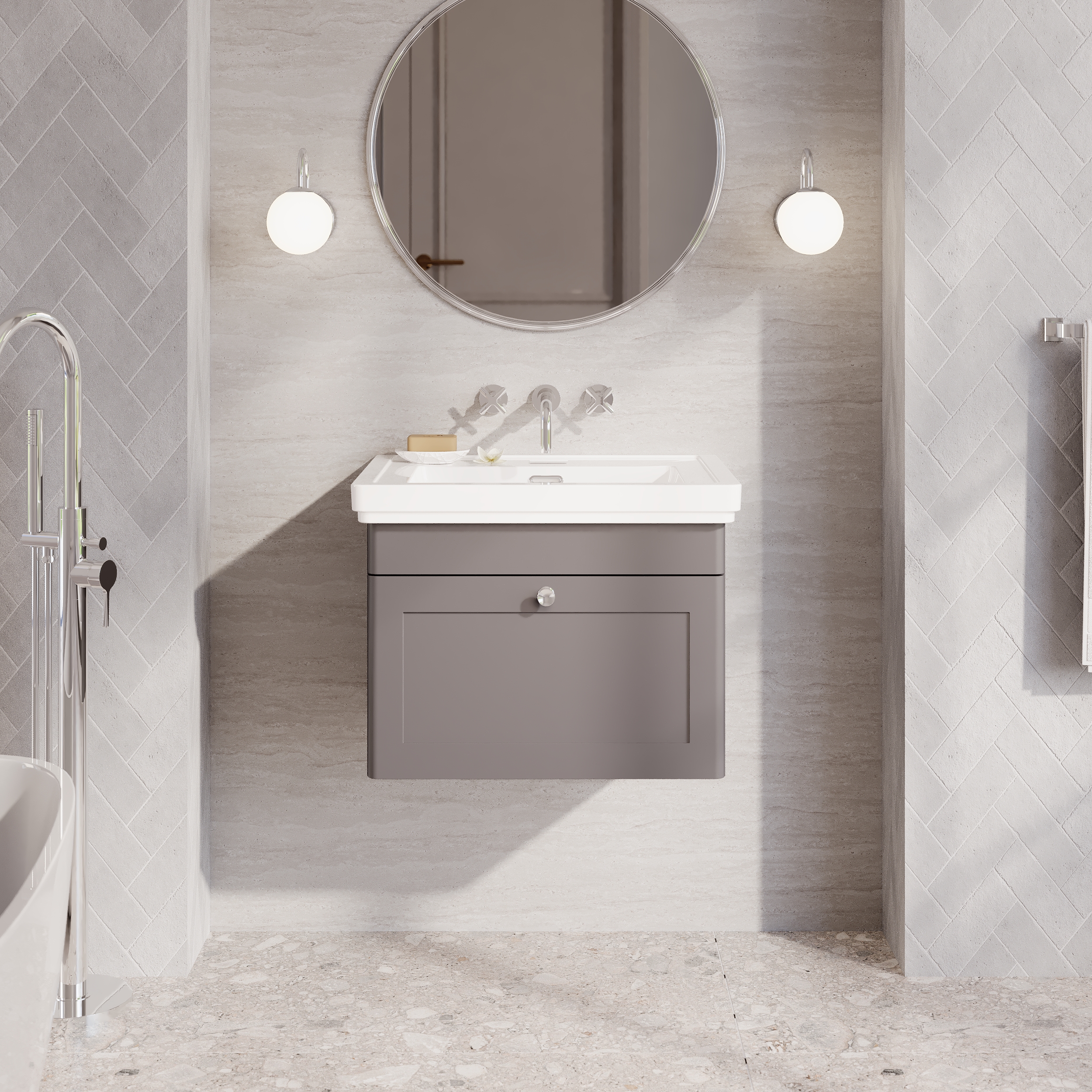 Nuie Classique 600mm Satin Grey Wall Hung 1 Drawer Vanity Unit With 1 Tap Hole Basin