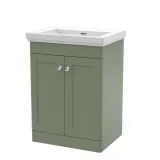 Nuie Classique 600mm Satin Green Floor Standing Vanity Unit With 0 Tap Hole Basin
