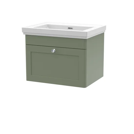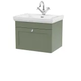 Nuie Classique 600mm Satin Green Wall Hung 1 Drawer Vanity Unit with 1 Tap Hole Basin