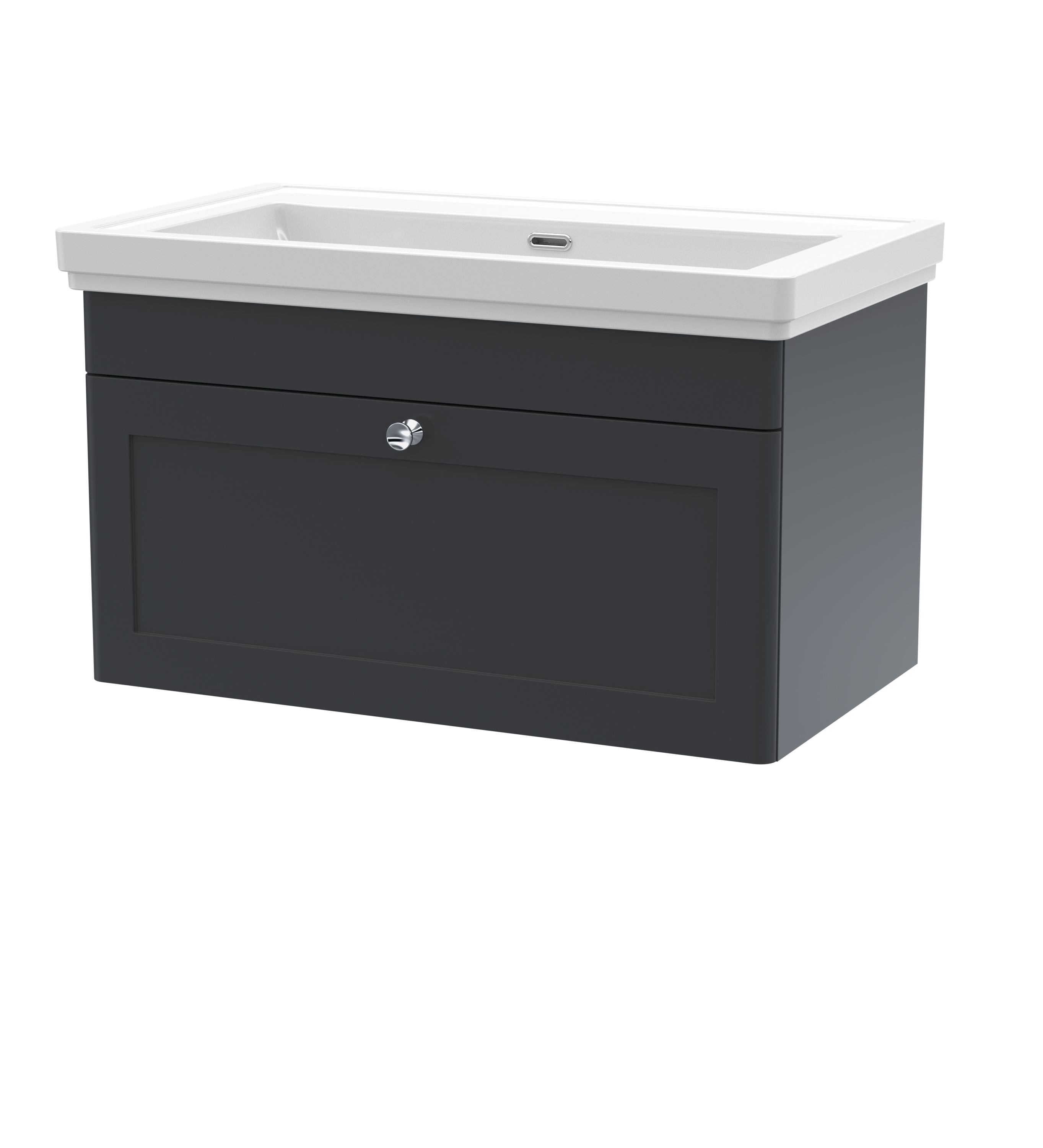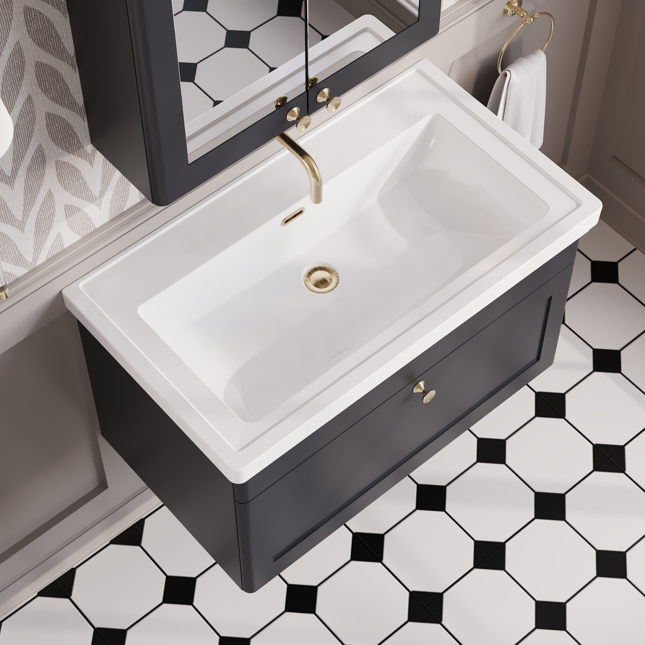 Nuie Classique 830mm Soft Black Wall Hung 1 Drawer Vanity Unit With 1 Tap Hole Basin