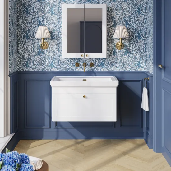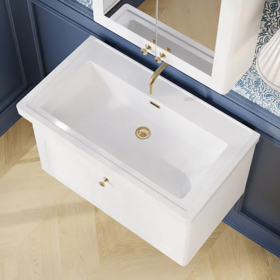 Nuie Classique 800mm Satin White 1 Drawer Wall Hung Vanity Basin Unit With 1 Tap Hole & Chrome Handle