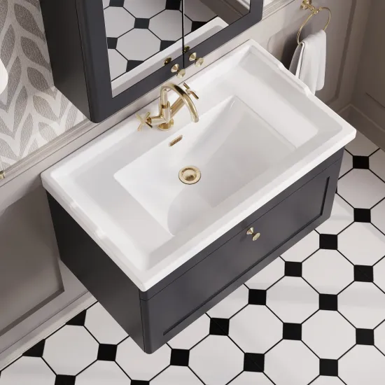Nuie Classique 830mm Soft Black Wall Hung 1 Drawer Vanity Unit With 1 Tap Hole Basin