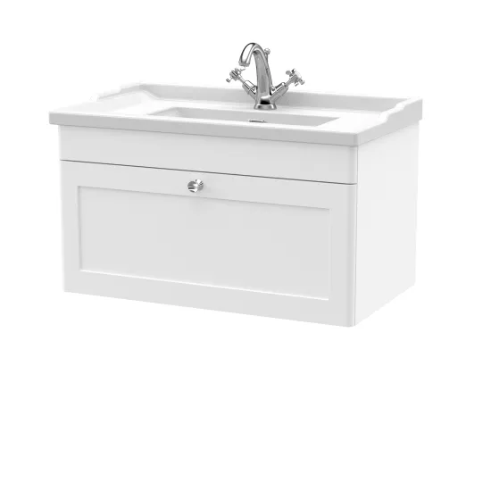 Nuie Classique 800mm Wall Hung 1 Drawer Vanity Unit With 3 Tap Hole Basin