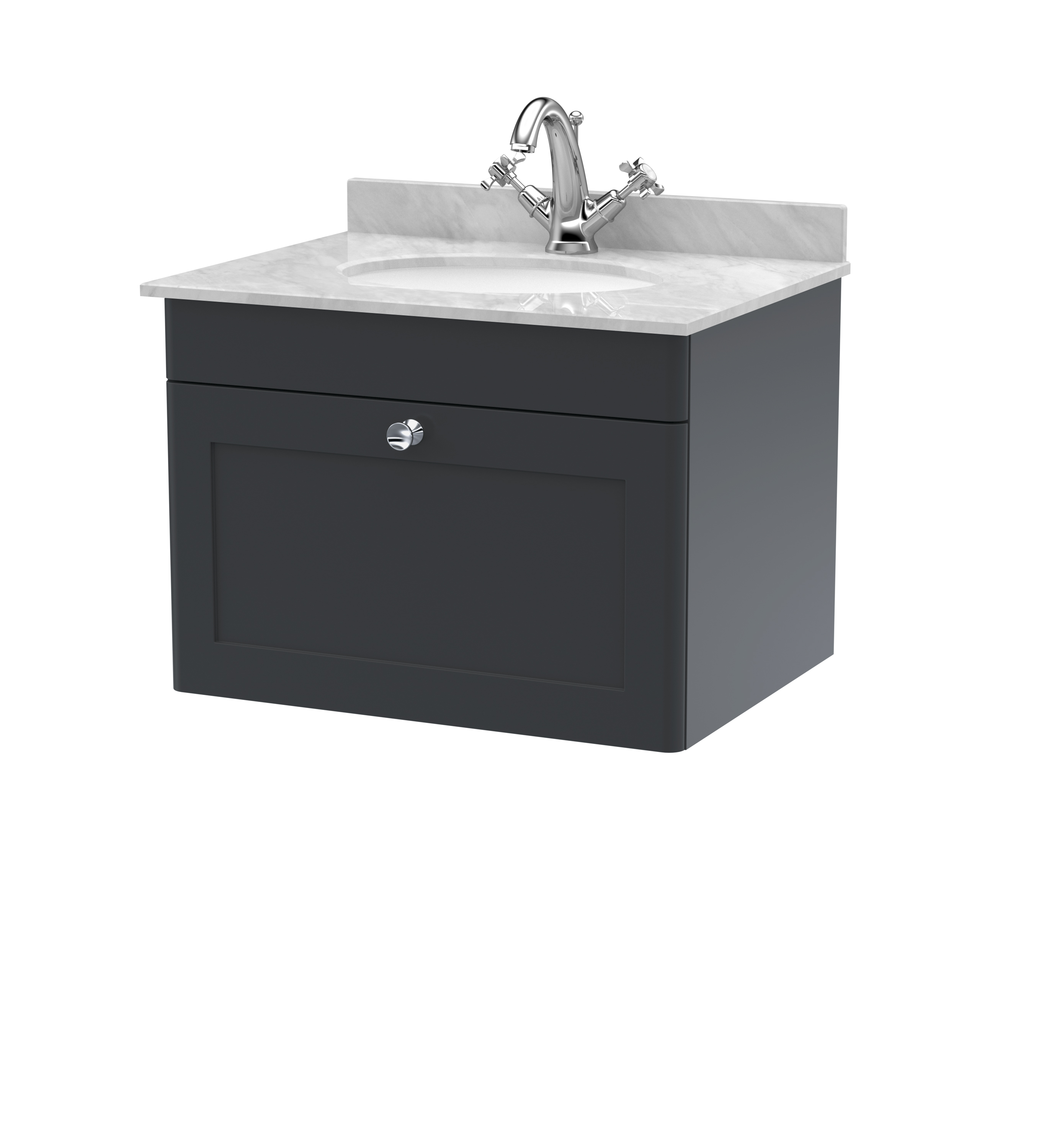 Nuie Classique 600mm Soft Black Wall Hung 1 Drawer Vanity Unit with 1 Tap Hole Basin