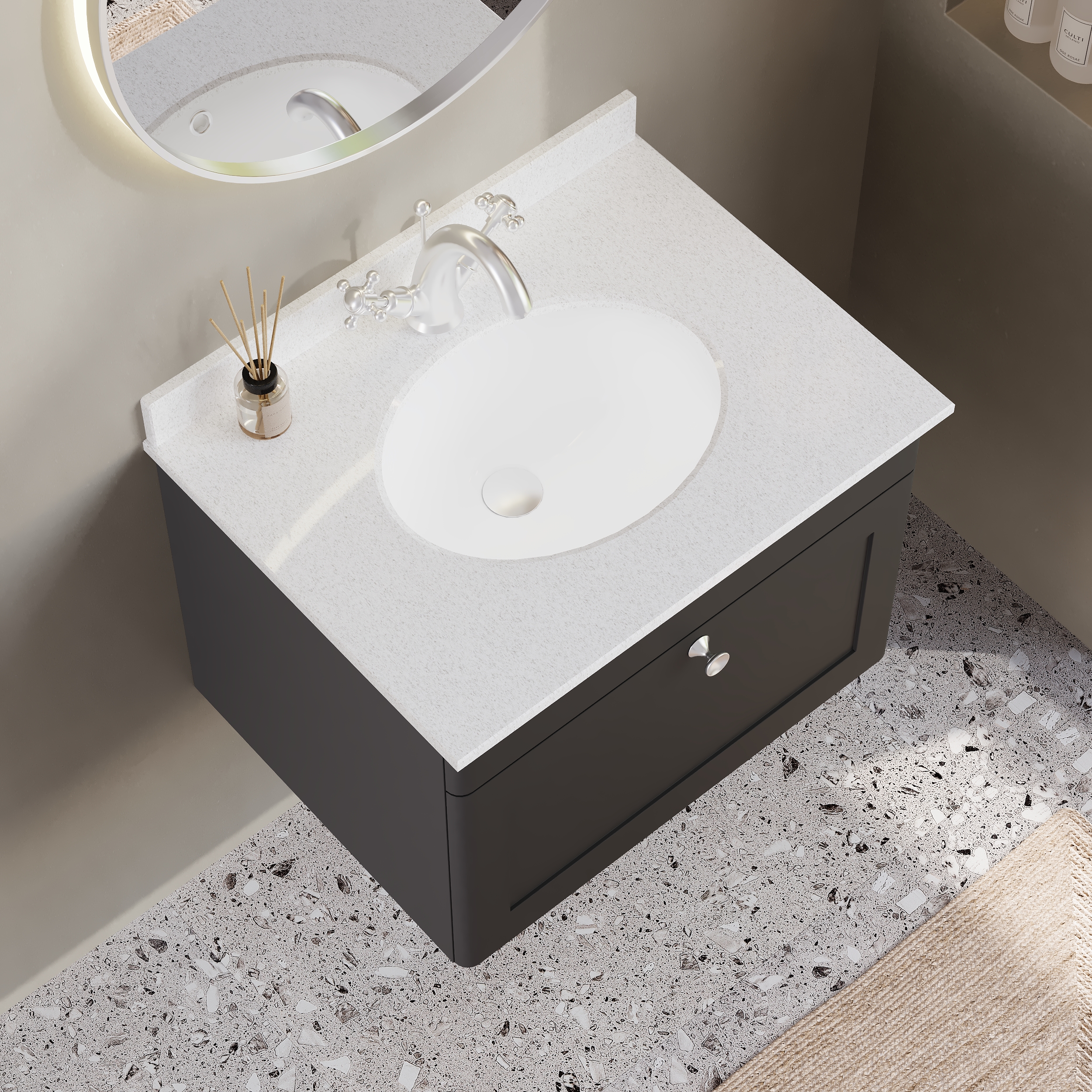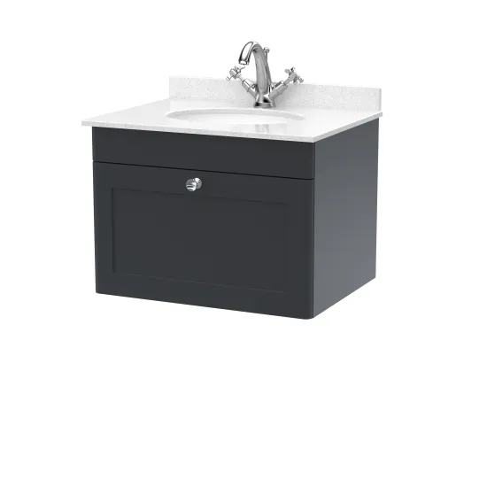 Nuie Classique 600mm Soft Black Wall Hung 1 Drawer Vanity Unit with 1 Tap Hole Basin