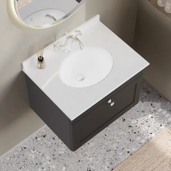 Nuie Classique 600mm Soft Black Wall Hung 1 Drawer Vanity Unit With 1 Tap Hole Round Basin