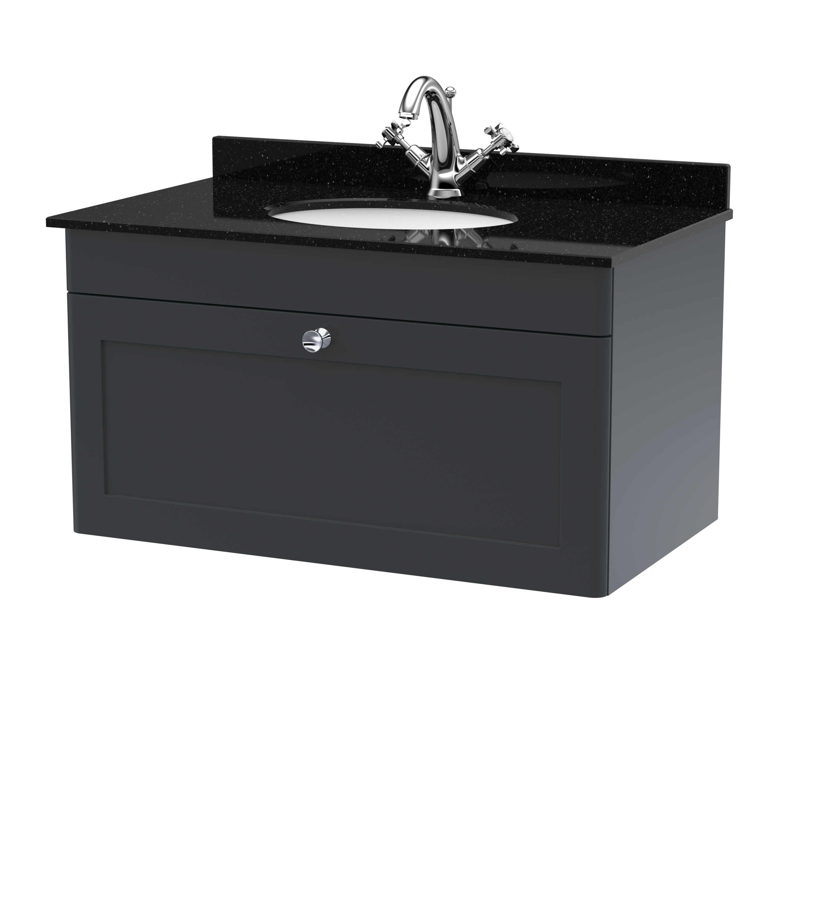 Nuie Classique 830mm Soft Black Wall Hung 1 Drawer Vanity Unit With 1 Tap Hole Basin