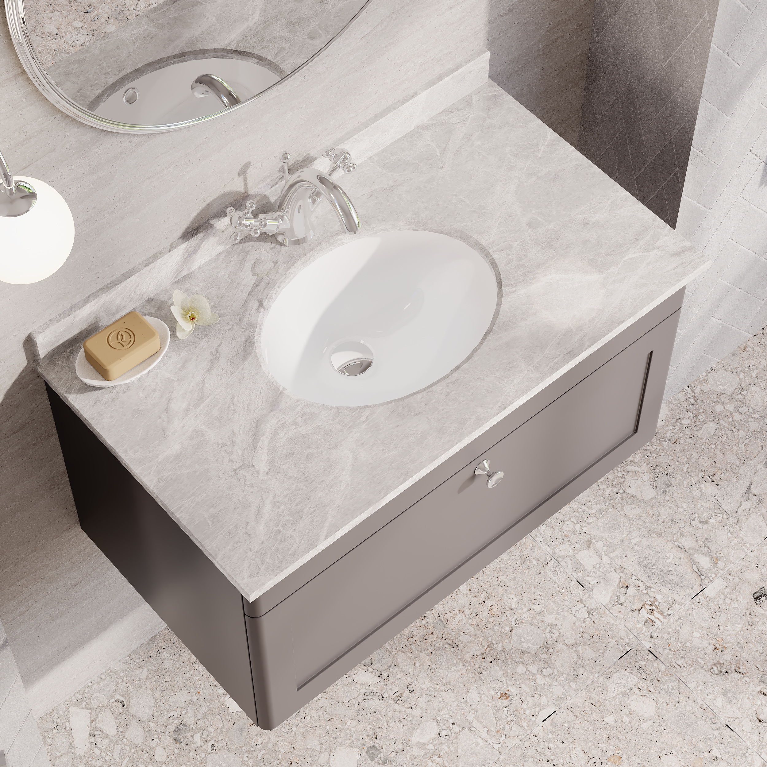 Classique Wall Hung 1 Drawer Unit & 1 Tap Hole Marble Top with Oval Basin, 800mm