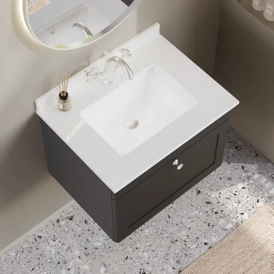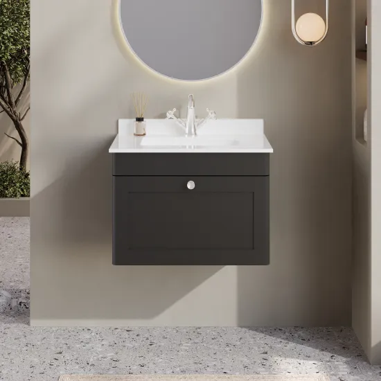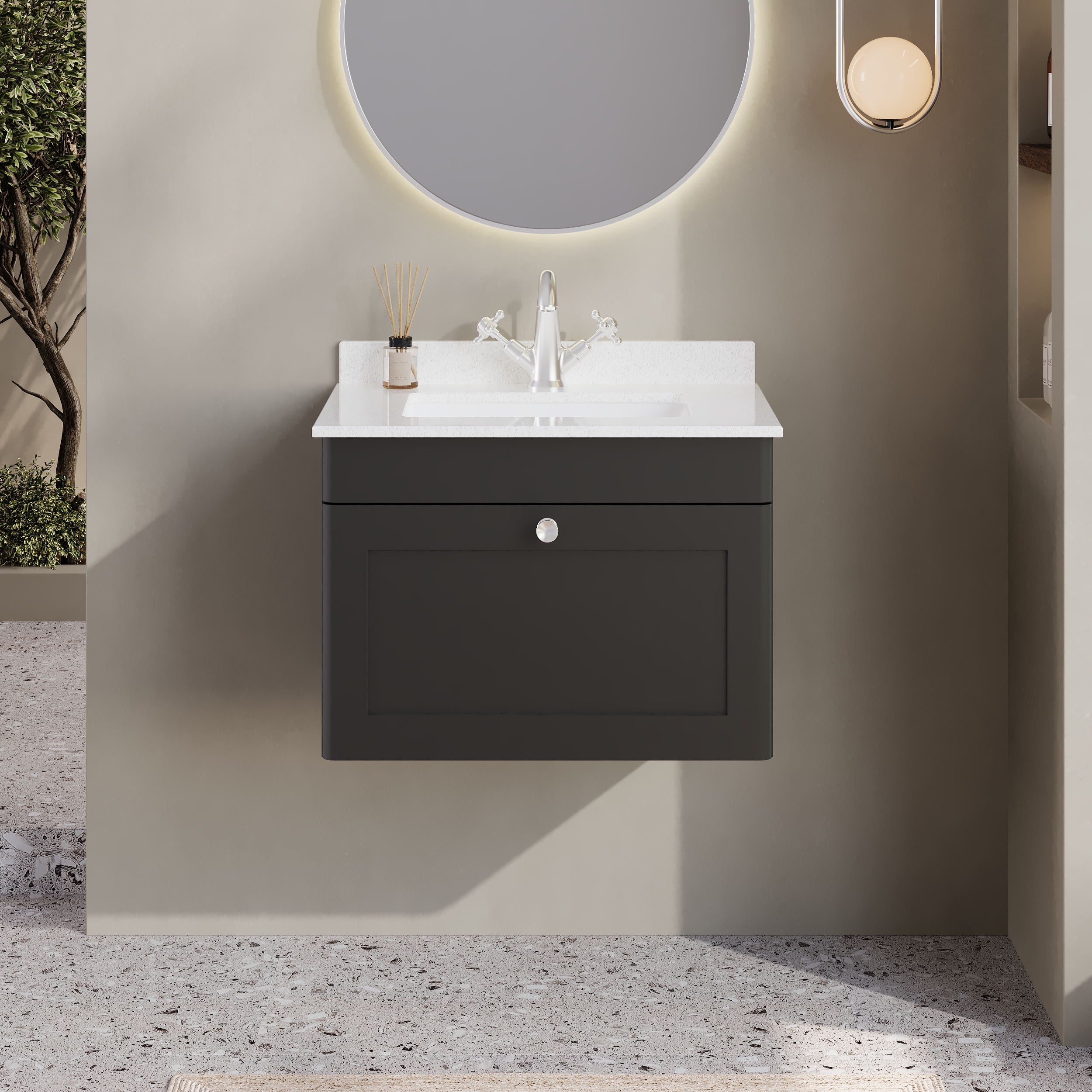 Nuie Classique 600mm Soft Black Wall Hung 1 Drawer Vanity Unit with 1 Tap Hole Basin