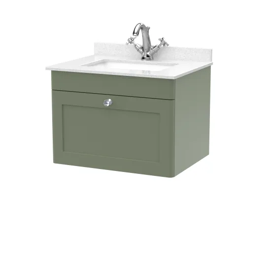 nuie Classique Wall Hung 1 Drawer Unit & 1 Tap Hole Marble Top with Square Basin, 600mm - Satin Green/White