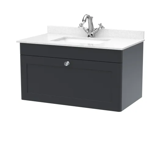 Nuie Classique 830mm Soft Black Wall Hung 1 Drawer Vanity Unit With 1 Tap Hole Basin