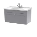 nuie Classique Wall Hung 1 Drawer Unit & 1 Tap Hole Marble Top with Square Basin, 800mm - Satin Grey/White