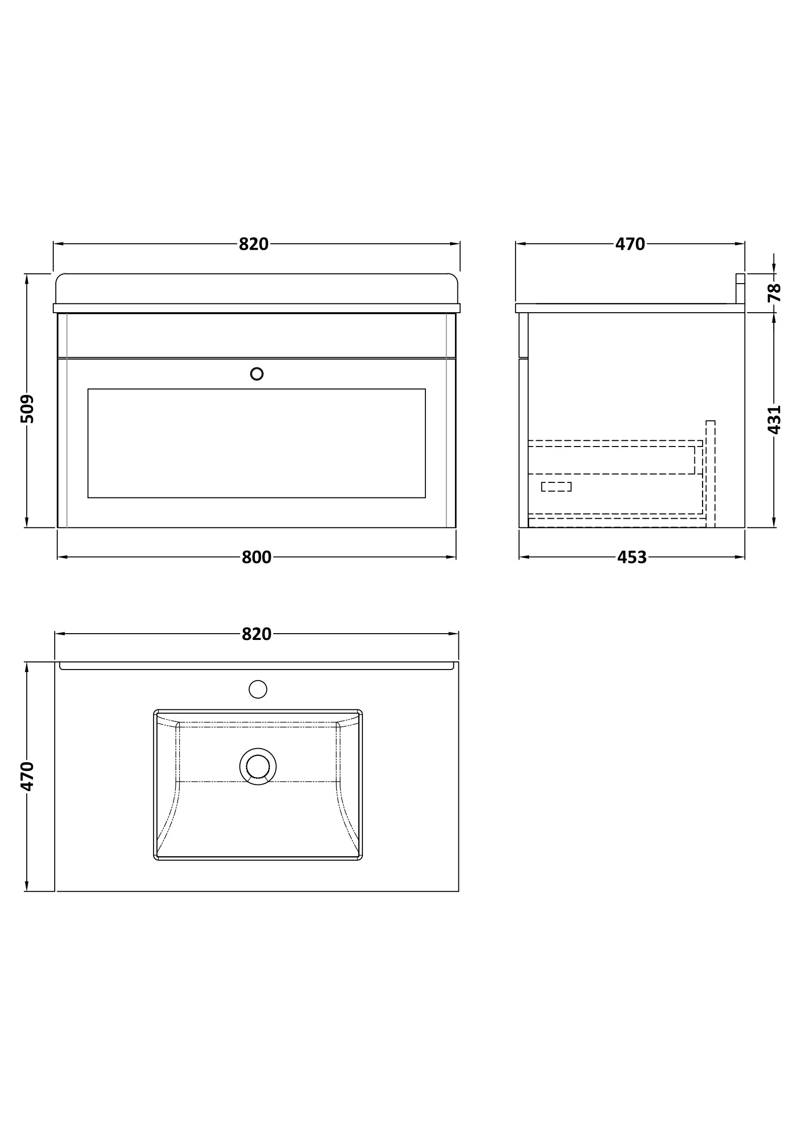 Nuie Classique 800mm Satin Green Wall Hung 1 Drawer Unit with 1 Tap Hole Marble Top & Basin