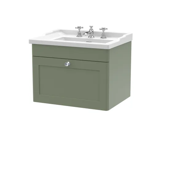 Nuie Classique 620mm Satin Green Wall Hung 1 Drawer Vanity Unit With 3 Tap Hole Basin