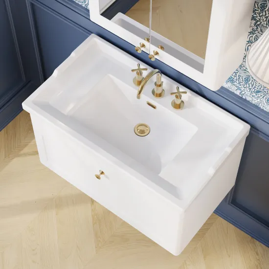 Nuie Classique 800mm Wall Hung 1 Drawer Vanity Unit With 3 Tap Hole Basin