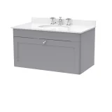 Nuie Classique 820mm Satin Grey Wall Hung 1 Drawer Vanity Unit with 3 Tap Hole Basin