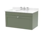 Nuie Classique 800mm Satin Green Wall Hung Vanity Unit with 3 Tap Hole Marble Top Oval Basin & Soft Close Drawer