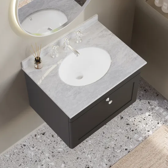 Nuie Classique 600mm Soft Black Wall Hung 1 Drawer Vanity Unit With 1 Tap Hole Round Basin