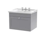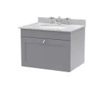 Nuie Classique 600mm Satin Grey Wall Hung 1 Drawer Vanity Unit With 3 Tap Hole Basin