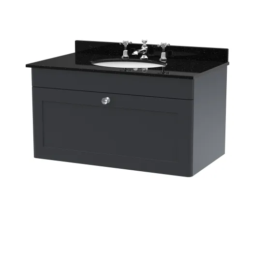 Nuie Classique 830mm Soft Black Wall Hung 1 Drawer Vanity Unit With 3 Tap Hole Basin