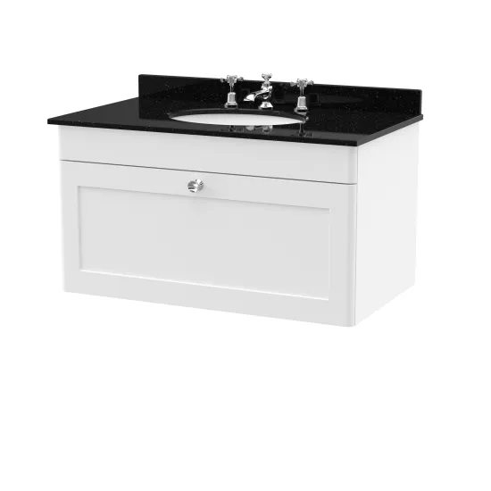 Nuie Classique 820mm Satin White Wall Hung 1 Drawer Vanity Unit with Basin & 1 Tap Hole