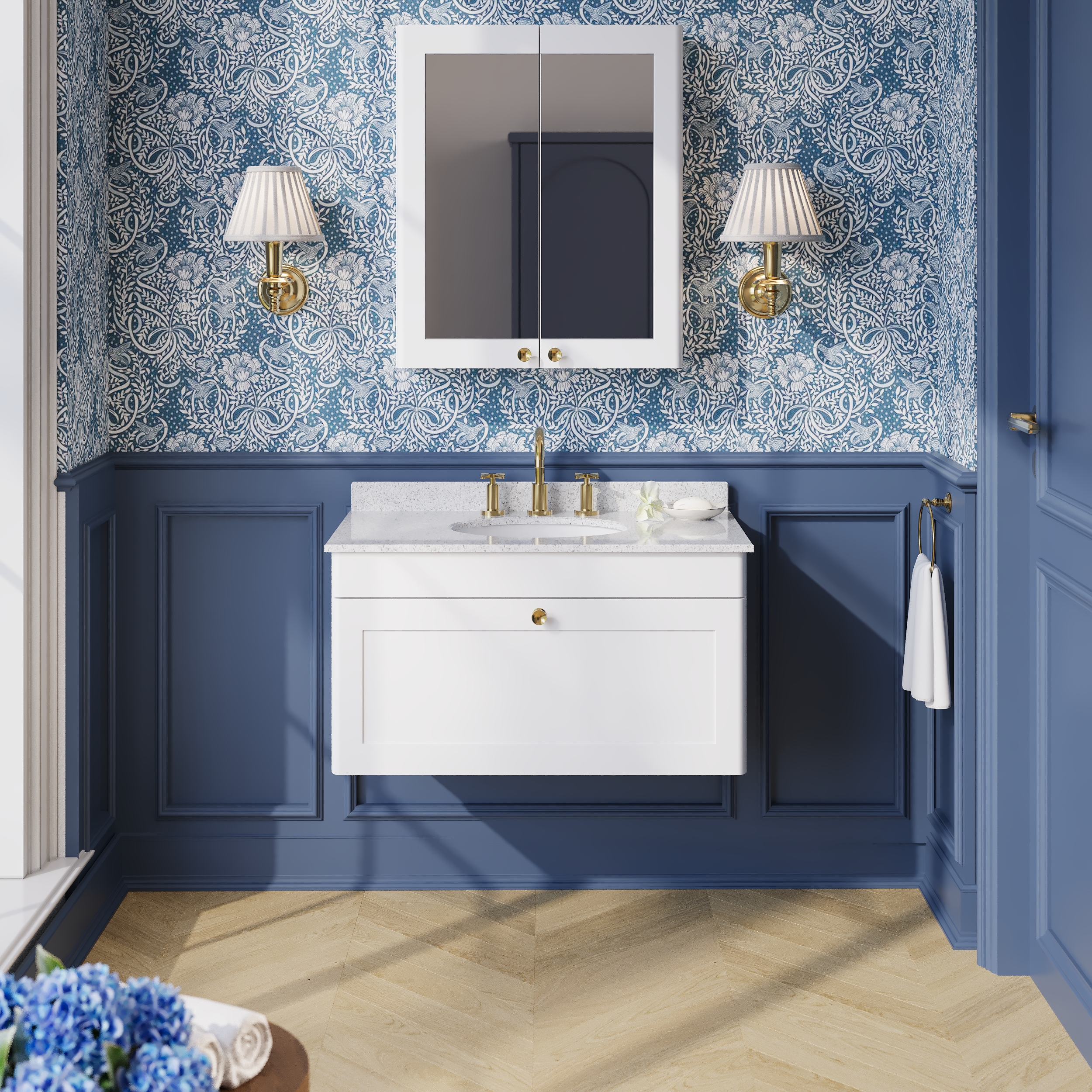 Nuie Classique 800mm Satin White Wall Hung 1 Drawer Vanity Unit With Basin