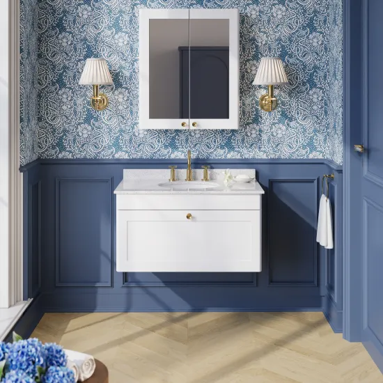 Nuie Classique 800mm Wall Hung 1 Drawer Unit with 3 Tap Hole Marble Top & Basin