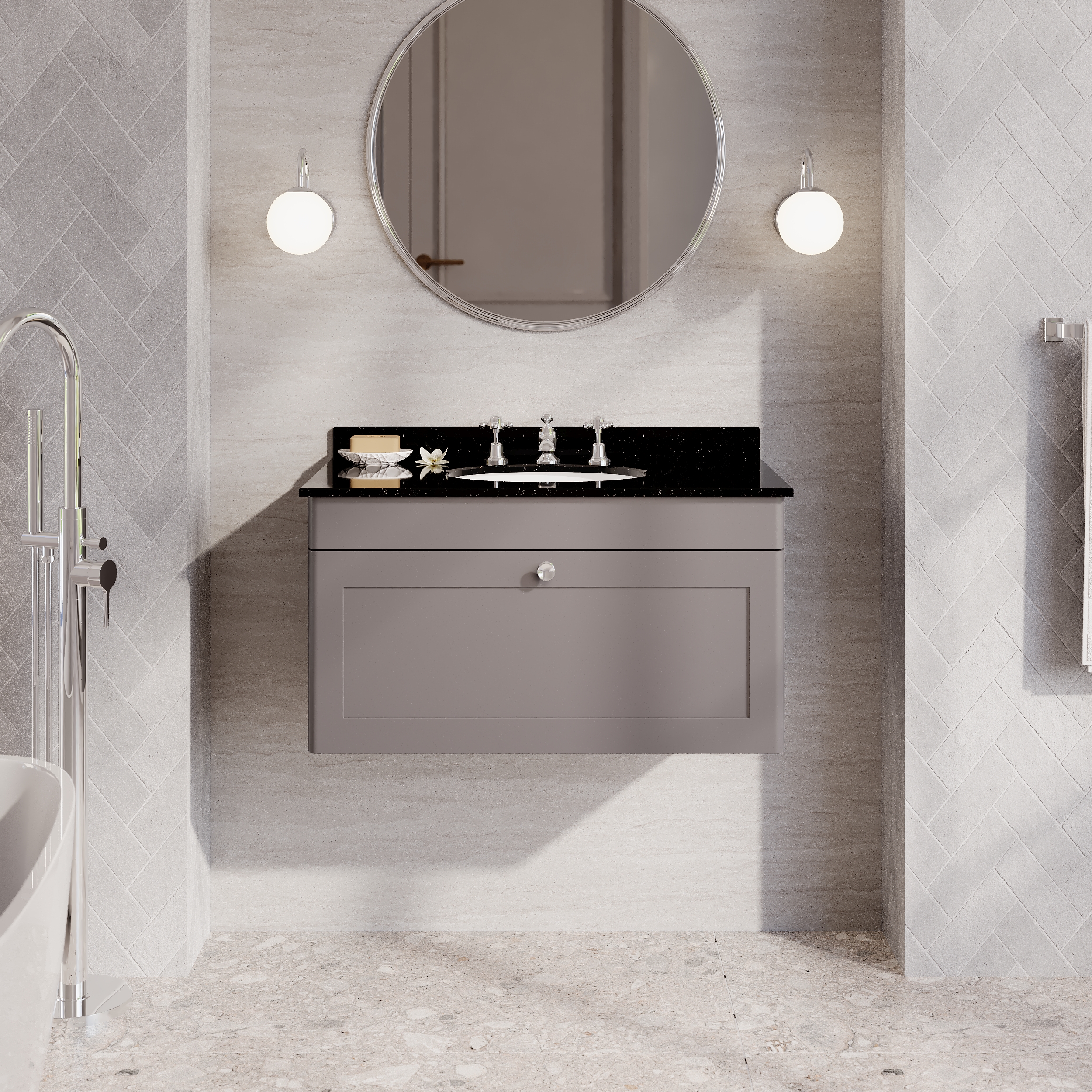 Nuie Classique 800mm Satin Grey Wall Hung 1 Drawer Vanity Unit with 3 Tap Hole Basin