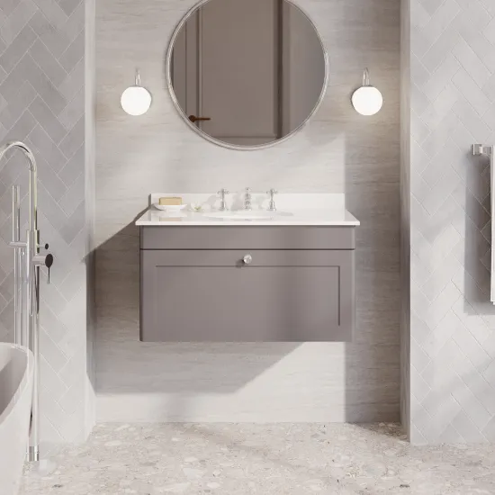 Nuie Classique 800mm Satin Grey Wall Hung 1 Drawer Vanity Unit with 3 Tap Hole Basin